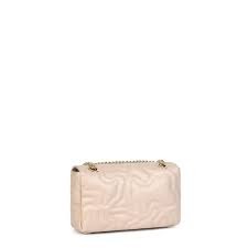 Bolso bandolera pequeña con solapa TOUS de la colección Kaos Dream de poliuretano acolchado en forma de osos con acabado efecto piel en color beige. Correa larga de bandolera tipo cadena ajustable. Cierre con botón magnético. Un bolsillo interior plano. Medidas: 8 x 25 x 15 cm