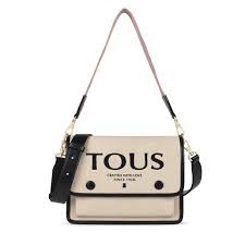 Bolso bandolera mediano TOUS de la colección Audree T Cotton de algodón natural en beige y elementos de poliuretano en color negro. Cierre con dos botones a presión. El bolso cuenta con asa de hombro y asa larga, ambas ajustables y desmontables. Dentro hay 3 compartimentos y un bolsillo interior con cremallera, con otro bolsillo plano en el exterior. Medidas: 11 x 25 x 20 cm