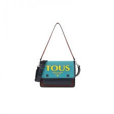 Bandolera TOUS para mujer de la colección TOUS Audree fabricada en vinilo efecto piel y vinilo transparente azul y amarillo, en tamaño mediano. Se trata de una original y colorida bandolera compuesta por asa corta de hombro y asa de bandolera larga ajustable y extraible. En su interior encontramos 2 compartimentos y un bolsillo con cierre de cremallera. En su exterior posee un bolsillo plano y cierre mediante botón magnético.