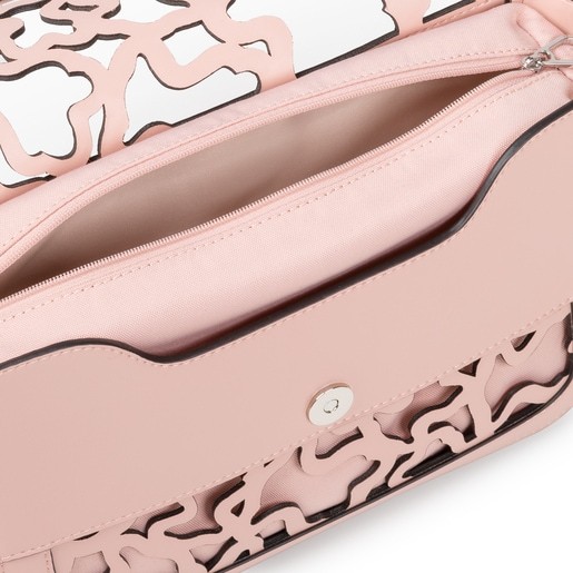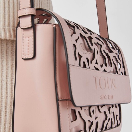 Bolso bandolera TOUS Amaya Kaos Shock de piel sintética con troquelado Kaos en color rosa. Incorpora una solapa y el cierre es con botón magnético. El asa de bandolera es ajustable. Incluye una bolsa interior de poliéster con cierre de cremallera. Esta bolsa se puede poner o quitar gracias a los botones a presión que incorpora. Medidas (alto x ancho x fondo): 20 x 28 x 8 cm.