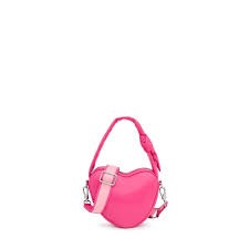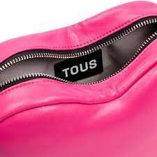 Bolso bandolera TOUS Carol en forma de corazón, elaborado con piel sintética y de color fucsia. Cierre con cremallera. Asa fija de hombro o mano con un bonito nudo decorativo y asa bandolera ajustable y extraíble. Medidas (alto x ancho x fondo): 17 x 21 x 6 cm.
