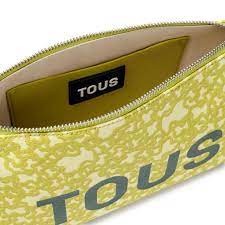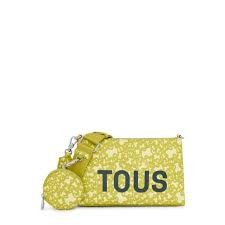 Bolso bandolera Flat TOUS Kaos Mini Evolution de lona con estampado en color lima. También incorpora detalles de piel sintética. Cierre con cremallera. Bolsillo interior abierto. Asa bandolera ajustable y extraíble con un monedero redondo con cremallera también extraíble. Diámetro monedero: 9 cm. Medidas (alto x ancho x fondo): 17,5 x 27 x 7 cm.