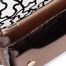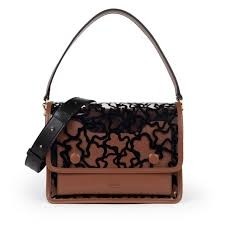 Bolso TOUS Bandolera mediana de la colección Audree de vinilo efecto piel en marrón y vinilo transparente con estampado Tous en color negro. Bolso cuenta con asa del hombo y asa larga ajustable y extraíble. Dentro hay 2 compartimentos y un bolsillo interior con cremallera y otro plano, exterior. Cierre con dos botones magneticos. Medidas: 25,5 x 18,5 x 11 cm