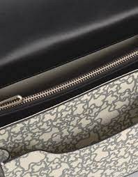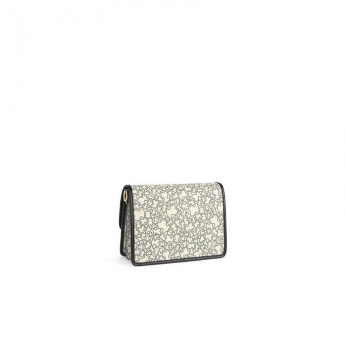 Bandolera TOUS para mujer de la colección Audree Kaos en tamaño mediano fabricada en poliuretano acabado en piel en color negro y beige con estampado Kaos, Se trata de una atrevida y original bandolera TOUS que cuenta con cierre exterior de 2 botones a presión y asa de hombro y larga ajustable y desmontable. En su interior cuenta con 3 compartimentos y un bolsillo con cremallera, mientras tanto en su exterior posee de un bolsillo exterior plano.