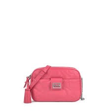 Bolso bandolera pequeño TOUS de la colección Kaos Dream de poliuretano acolchado en forma de osos con acabado efecto piel en color fucsia. Correa larga de bandolera ajustable. Cierre de cremallera. Un bolsillo interior y dos bolsillos exteriores planos. Medidas: 8 x 25 x 16 cm.