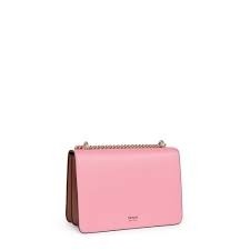 Bolso TOUS Bandolera pequeña de la colección Audree de vinilo efecto piel en rosa y rojo. Bolso cuenta con asa larga tipo cadena. Dentro hay 2 compartimentos y un bolsillo interior con cremallera. Cierre con botones magneticos magnetico. Medidas: 22 x 15 x 9 cm