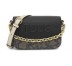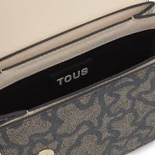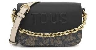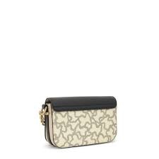 Bolso bandolera pequeño Chain Kaos Icon de lona con detalles de poliuretano en color negro y beige. Cuenta con tres compartimentos abiertos. Cierre de solapa con botones magnéticos. Asa fija de mano tipo cadena y asa bandolera ajustable y desmontable. Medidas (alto x ancho x fondo): 14 x 24 x 9 cm.