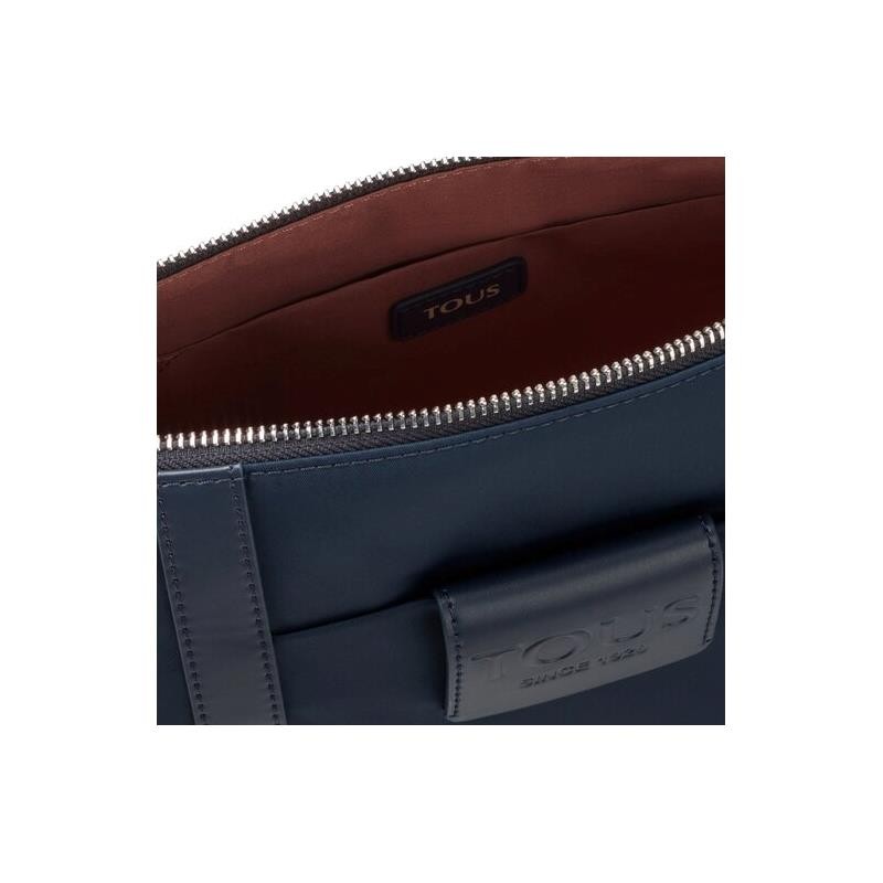 Bolso bandolera TOUS para mujer de la colección Empire Soft Chain fabricada en nylon recilcado color azul marino. Esta sofisticada y atractiva bandolera cuenta con cierre exterior de cremallera y un asa larga de bandolera compuesta de cadena y poliuretano. Cuenta con 2 bolsillos planos, uno de ellos en el interior y otro en el exterior.