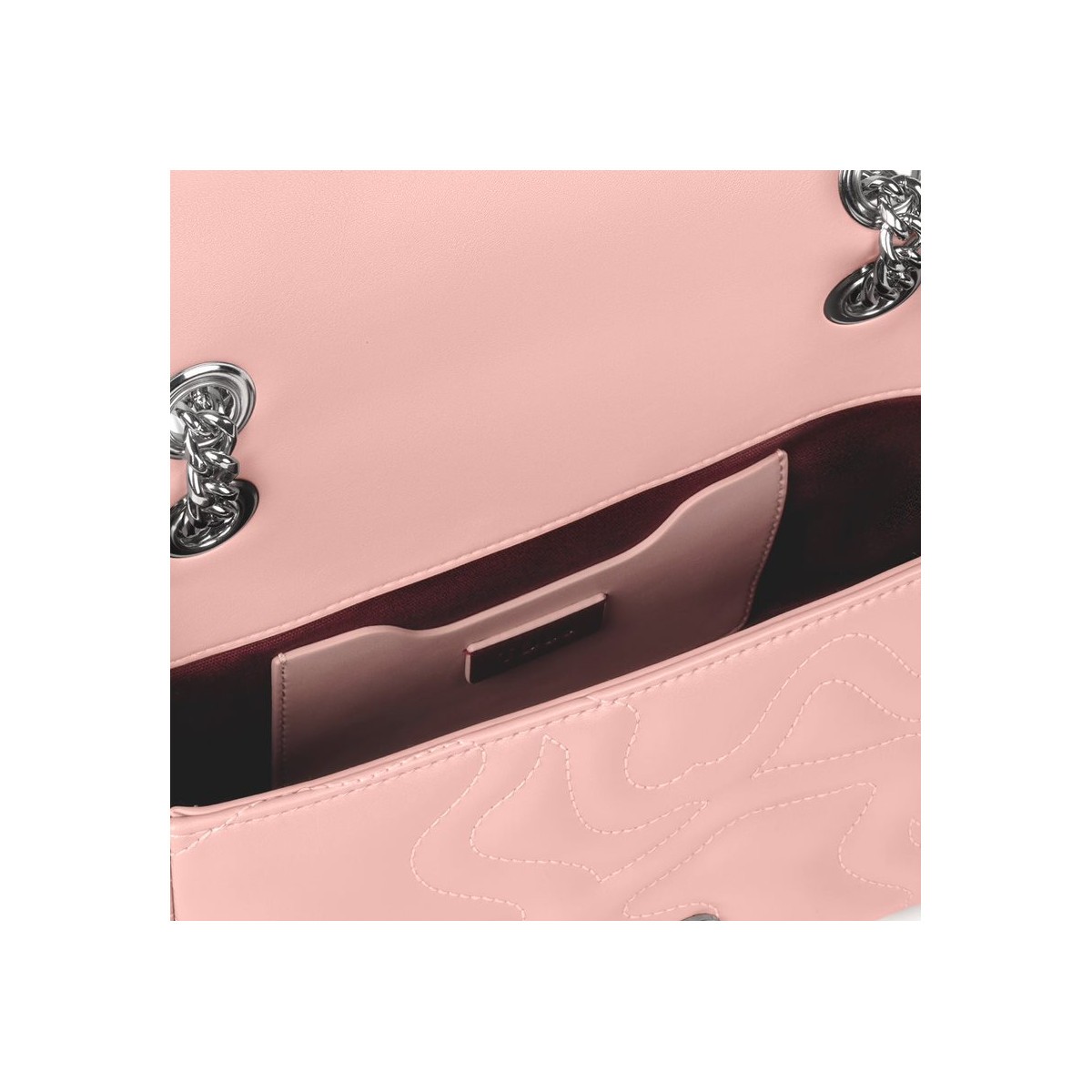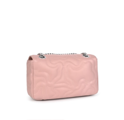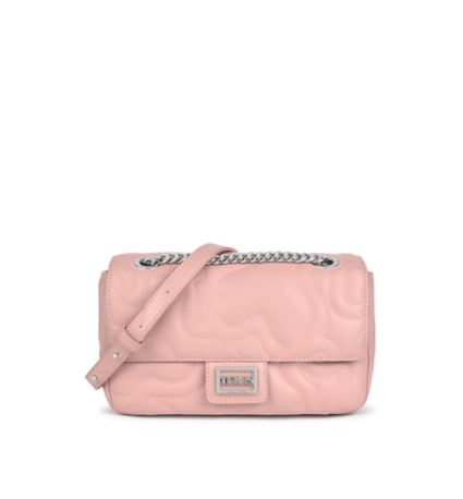 Bolso bandolera pequeña con solapa TOUS de la colección Kaos Dream de poliuretano acolchado en forma de osos con acabado efecto piel en color rosa. Correa larga de bandolera tipo cadena ajustable. Cierre con botón magnético. Un bolsillo interior plano. Medidas: 8 x 25 x 15 cm.