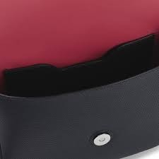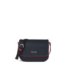 Bolsa bandolera Tous de la colección Essential de vinilo efecto safiano combinado con vinilo efecto piel en color azul marino y fucsia. Cierre con botón magnetico. Asa de bandolera ajustable. Bolsa cuenta con 1 bolsillo exterior y otro plano interior. Medidas: 22,5x 17 x 7cm.