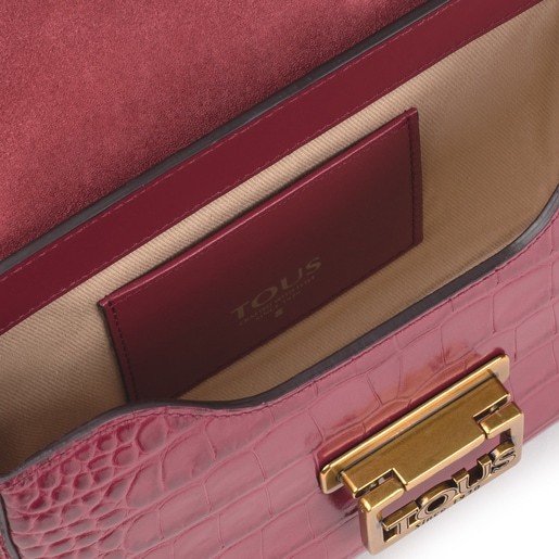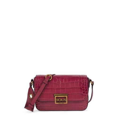 Bolso bandolera Tous de la colección Tous Legacy Wild de piel vacuna grabada en color burdeos. Asa de bandolera ajustable. Cierre con solapa y placa giratoria de metal. Medidas: 22 x 16,6 x 6 cm.