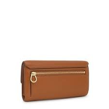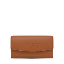 Billetera grande TOUS Bloom de poliuretano en color camel. Cierre de solapa con dos botones a presión. En el interior cuenta con doce ranuras para tarjetas, una de ellas transparente y un compartimento para billetes. Bolsillo exterior con cremallera para monedas. Medidas (alto x ancho x fondo): 10 x 18 x 2 cm.3