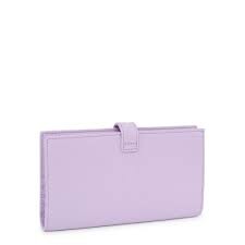 Billetera grande TOUS Miranda en color lila. Cierre con botón a presión. Bolsillo exterior abierto. En el interior cuenta con un bolsillo con cremallera para monedas, ocho ranuras para tarjetas y cuatro compartimentos abiertos para billetes. Medidas (alto x ancho x fondo): 10,7 x 19,5 x 1,6 cm.