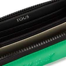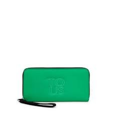 Billetera TOUS Balloon Soft de nylon reciclado en color verde con cierre de cremallera. Tirador funcional y ergonómico como asa de mano. En el interior cuenta con dos compartimentos abiertos para billetes, un bolsillo central con cremallera para monedas y 8 ranuras para tarjetas. Medidas (alto x ancho x fondo): 10,5 x 19 x 2 cm.