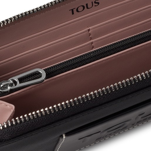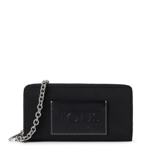 Billetera mediana TOUS de la colección Empire Soft Chain de nylon reciclado en color negro. Cierre con cremallera. Interior: 4 compartimentos para tarjetas, 2 compartimentos grandes para diferentes pertenencias y un compartimento con cremallera. Medidas: 10 x 19,5 x 3 cm.