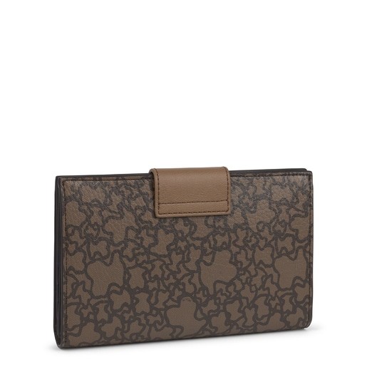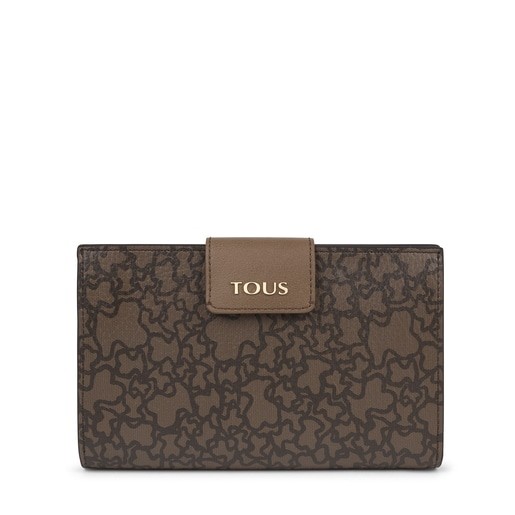Billetera mediana TOUS Kaos Mini de lona hidrófuga combinado con vinilo efecto piel en marrón. Cierre con botón a presión. Interior: 10 compartimentos para tarjetas, 4 compartimentos para pertenencias varias y 1 compartimento con cremallera. Medidas: 19 x 12 x 3 cm.