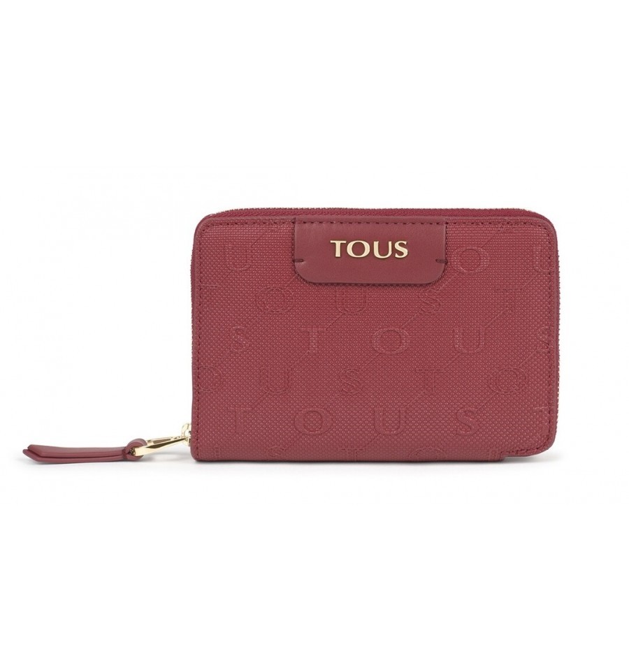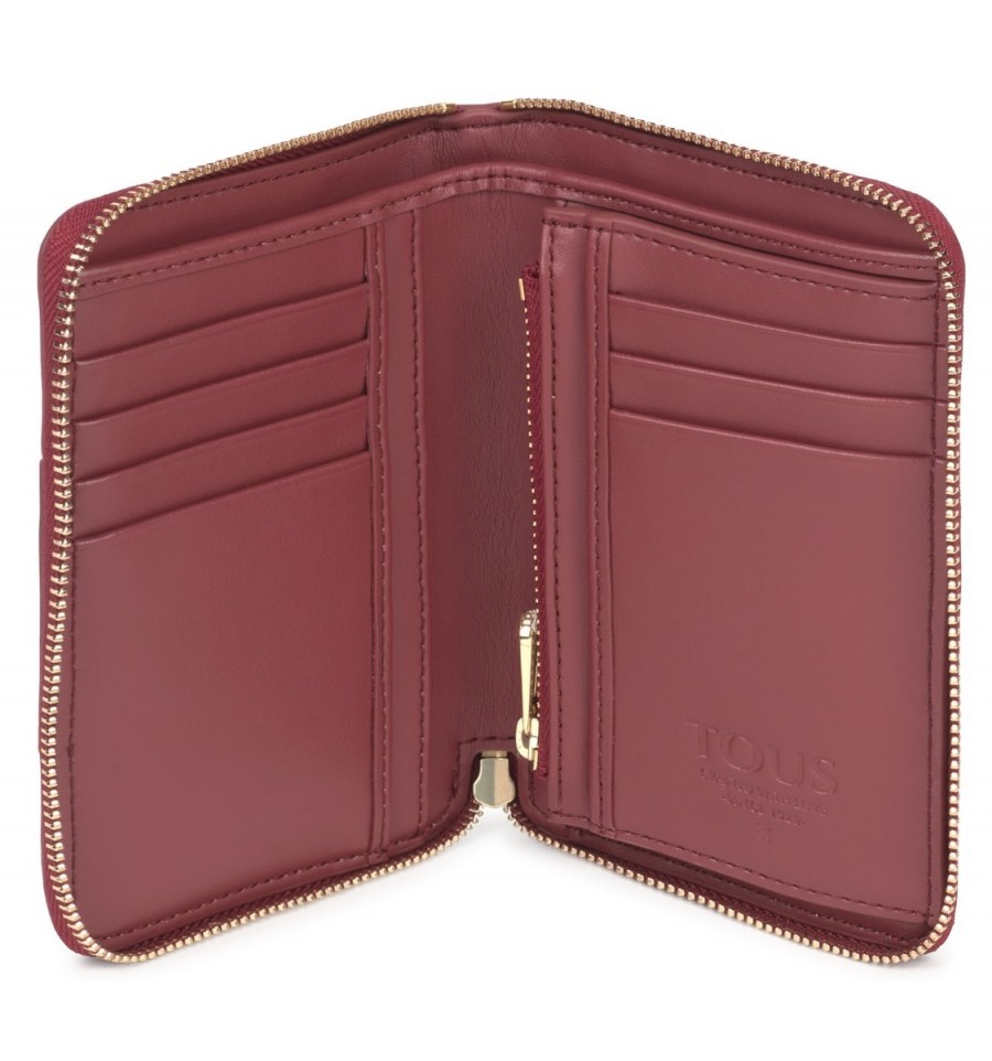Billetera pequeña Tous de la colección Script Day de nylon en color burdeosCierre con cremalleraBilletera cuenta con 1 departamento grande para billetes, 1 bolsillo con cremallera para las monedas y 7 bolsillos planos para tarjetasMedidas: 2 x 20 x 10cm