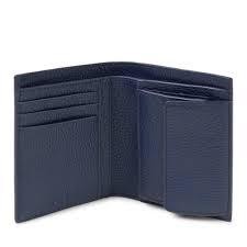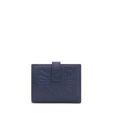Cartera TOUS Miranda en color azul marino. Cierre con botón a presión. Bolsillo exterior abierto. En el interior cuenta con seis ranuras para tarjetas, un bolsillo con botón para monedas y un compartimento para billetes. Medidas (alto x ancho x fondo): 11,5 x 12 x 1,8 cm.