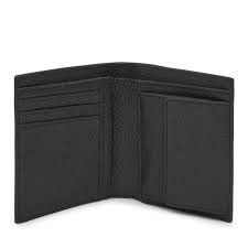Cartera TOUS Miranda en color negro. Cierre con botón a presión. Bolsillo exterior abierto. En el interior cuenta con seis ranuras para tarjetas, un bolsillo con botón para monedas y un compartimento para billetes. Medidas (alto x ancho x fondo): 11,5 x 12 x 1,8 cm.