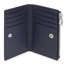 Cartera TOUS Hanna de poliuretano en color azul marino. Cierre con botón a presión. Tiene un compartimento para monedas con cierre de cremallera. En el interior cuenta con ocho ranuras para tarjetas y dos espacios para billetes. Medidas (alto x ancho x fondo): 8 x 14 x 2 cm.