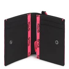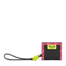 Billetera pequeña Tous de la colección Ina en negro mezclado con elementos en fluorescente. Cierre con botón a presión. Billetera cuenta con 1 compartimento para billetes, 4 para las tarjetas y 1 bolsillo con cremallera. Incluye asa de mano, detalle/borla oso y mosqueton que permite complementar la billetera con el bolso de la misma colección. Composición: Nylon reciclado. Medidas: 2 x 9 x 10 cm.