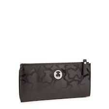 Billetero TOUS Kaos Shiny modelo K Shiny-309 en vinilo hidrófugo color negro. Cierre con cremallera. Departamento interior con cierre de dos botones a presión. Veintidós departamentos interiores para tarjetas, tres para varios y uno para billetes. Medidas: 10x19,5x3 cm.