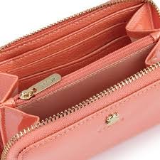 Billetero pequeño TOUS Dorp de vinilo efecto charol en color rosa. Interior: cuatro departamentos para tarjetas, un departamento con cremallera y cuatro departamentos para varios. Medidas: 11x13x2 cm.