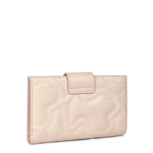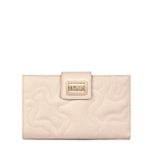 Billetera grande TOUS de la colección Kaos Dream de poliuretano acolchado en forma de osos con acabado efecto piel en color beige. Cierre con botón a presión. Interior: 9 compartimentos para tarjetas, 3 compartimentos grandes para otras pertenencias y un compartimento con cremallera. Medidas: 12 x 19 x 3 cm.