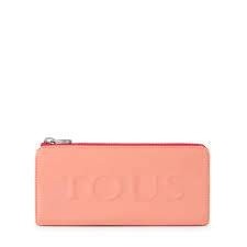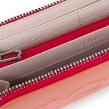 Billetera mediana TOUS de la colección Dorp, en vinilo de efecto piel y acabado charol con relieve TOUS en color rosa. Cierre con cremallera. Compartimento central con cremallera, ocho compartimentos para tarjetas y dos bolsillos planos. Medidas: 10 x 19 x 3 cm.