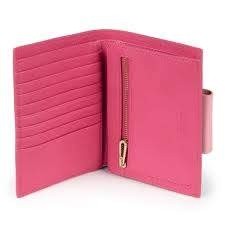 Billetera pequeña TOUS Kaos Mini de lona hidrofuga combinado con vinilo efecto piel en beige y fucsia. Cierre con botón a presión. Interior: 8 departamentos para tarjetas, 4 departamentos para varios y 1 departamento con cremallera. Medidas: 12,5 x 11 x 2,5 cm.