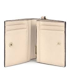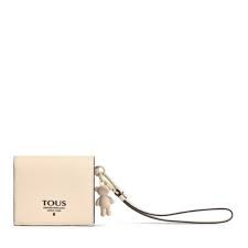 Billetera pequeña Tous de la colección Pop de piel sintética con acabado safiano en color beige. Cierre con boton magnetico. 6 compartimentos planos para tarjetas, 1 bolsillo con cremallera y un bolsillo grande para los billetes. Billetera cuenta con asa de mano y oso colgante. Medidas: 3 x 11 x 9 cm.