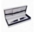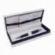 Estuche Bolígrafo cuadros detalles metal plateados negro giratorio