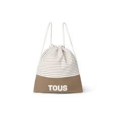 Bolsa Tous Baby para llevar a la guarderia y de paseo. Confeccionada en suave algodón a rayas y en tejido liso con logo TOUS. Pequeña asa central y cierre con cordones. Interior de PVC. Composición: 100% Algodón. Color: Beige. Medidas: 30x26cm.