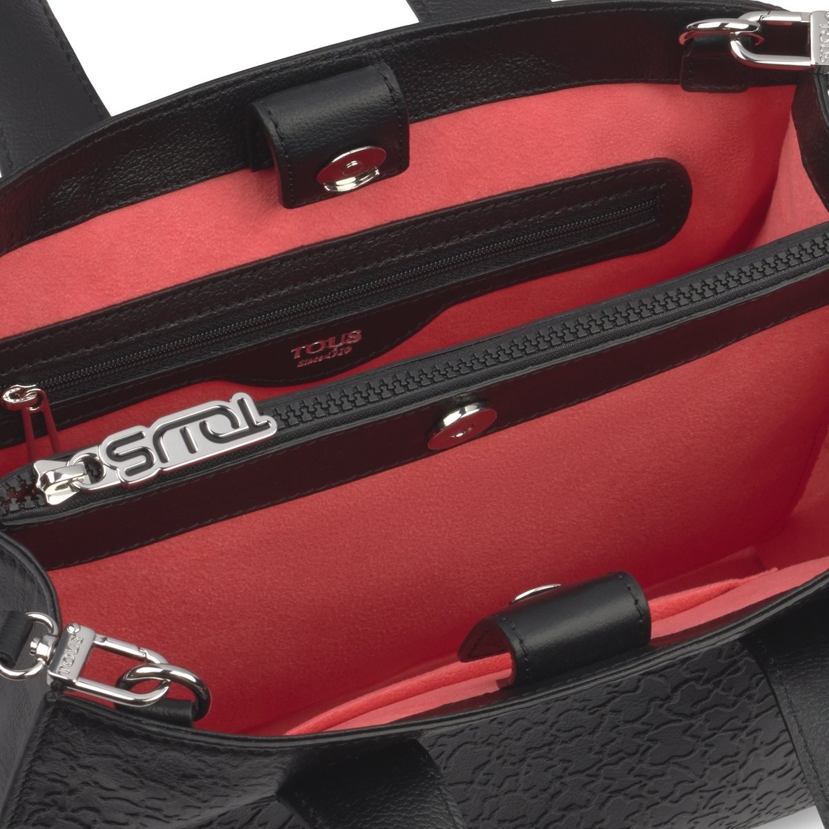 BOLSO TOUS.CITY.SIRA.NEGRO.095890653 de piel en color negro. Cierre con botones magnéticos. Apliques personalizados. Asas de mano y asa de bandolera ajustable y extraíble. Compartimento central con cremallera, un bolsillo interior plano y otro con cremallera. Medidas: 23x31x16 cm.