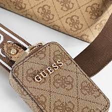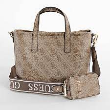 - Moderno bolso MARRON de mano en símil piel con logotipo Guess metálico