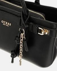Bolso de mano modelo Gregoria con cierre cremallera e imantado, logotipo metálico central Guess 1981 y compartimiento posterior con cierre cremallera