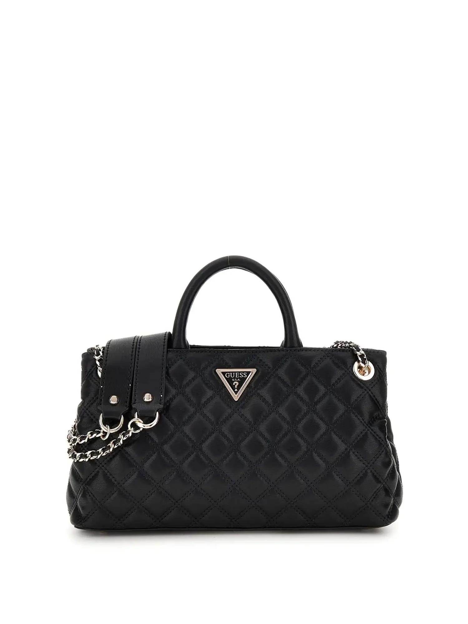 Guess jeans. Tonos: los NEGROS. Modelo: bolso de mano. Tronco: piel sintética. Logo: metal. Bolsa: exterior con cremallera, varios interiores. Bandolera: cadena de metal. Cierre: abotonadura + cremallera. Ancho: 31cm. Altura : 19 cm. Profundidad: 13 cm. Materia: 100% Poliuretano.