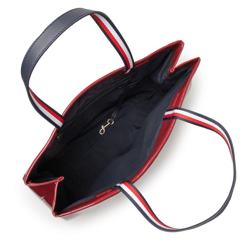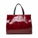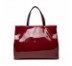 bolso tote, con acabado acharolado y asas distintivas, es ideal para dar un toque de brillo y de color a tus looks de diario.