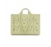 Bolso shopper Amaya grande de piel sintética en color verde. Bolsillo interior con cierre de cremallera. Asas fijas de mano y hombro. En el interior contiene un neceser extraíble con cierre de cremallera. Medidas (alto x ancho x fondo): 28 x 41 x 17 cm.