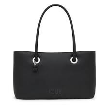 Bolso City grande TOUS Poppy de poliuretano en color negro. Dos compartimentos con cierre de cremallera. Bolsillo interior abierto. Asas fijas de hombro. Medidas (alto x ancho x fondo): 22 x 38 x 16,5 cm.