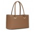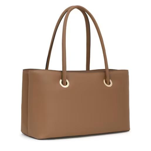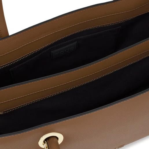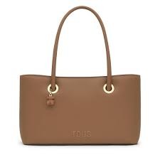 Bolso City grande TOUS Poppy de poliuretano en color tierra. Dos compartimentos con cierre de cremallera. Bolsillo interior abierto. Asas fijas de hombro. Medidas (alto x ancho x fondo): 22 x 38 x 16,5 cm.