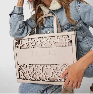 Bolso shopping grande TOUS Amaya Kaos Shock de vinilo efecto piel en color beige. Asas largas de hombro. Lleva botónes a presión para poder incorporar bolsa Amaya Kaos Shock. Medidas: 15 x 39,5 x 32 cm. Nota: Bolsa interior está incluida.