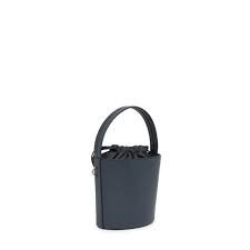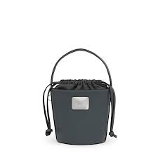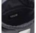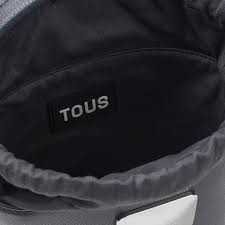 Bolso bombonera pequeño TOUS Lucia de poliuretano en color gris oscuro. Cierre con cordón ajustable. Bolsillo interior abierto. Asa de mano fija y asa bandolera ajustable y extraíble. Medidas (alto x ancho x fondo): 17 x 18 x 10 cm.
