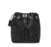 Bolso bombonera TOUS de la colección Kaos Dream de poliuretano acolchado en forma de osos con acabado efecto piel en color negro. Correa larga de bandolera ajustable. Cierre con cordón ajustable. Un bolsillo interior con cremallera. Medidas: 17 x 19 x 25,5 cm.