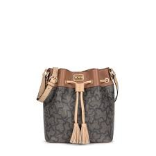 Bolso bombonera Kaos Icon de lona hidrofuga combinado con vinilo efecto piel, estampado kaos en multi negro. El bolso cuenta con una correa larga ajustable, cierre con cordon decorativo. Dentro hay un bolsillo con cremallera. Medidas: 14,5 x 24 x 26,5cm.
