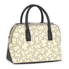 Bolso Bowling TOUS Kaos Icon de lona hidrófuga combinada con vinilo efecto piel con estampado Kaos en negro y blanco. Cierre con cremallera. Asas de mano y correa de bandolera ajustable y desmontable. El bolso cuenta con un bolsillo interior con cremallera. Medidas: 32 x 24 x 16 cm.