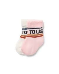 Pack 2 pares de calcetines de bebé Tous Baby en Jacquard con logo TOUS y franjas. Confeccionados con elastano para que se mantenga ajustado y confortable en el pie del bebé.