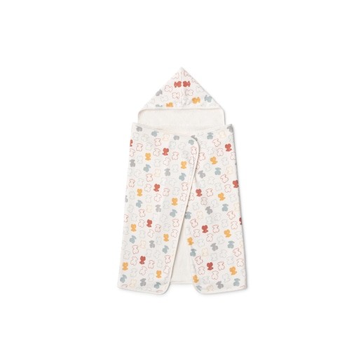Capa de baño Baby TOUS con capucha en tejido de rizo liso combinado en suave algodón osos multicolor. Ofrece calidez, confort y gran absorción en el secado del bebé. COMPOSICIÓN: 100% Algodón. Color crudo. MED.: 60x120. Certificado OEKO/TEX*. Fabricado en la UE.