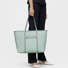 Bolso capazo grande TOUS MANIFESTO de lona con detalles en piel sintética de color menta. Cierre de cremallera. Bolsillo interior con cremallera. Asas de hombro fijas. Medidas (alto x ancho x fondo): 30 x 50 x 15 cm.