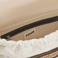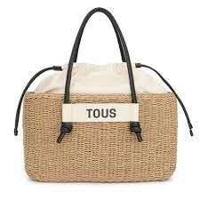 Bolsa capazo grande TOUS Scoubidou elaborado con rafia de mezcla de papel procedente de bosques sostenibles y materiales reciclados. También incorpora detalles de piel sintética en color negro. Cierre con cordón ajustable. En el interior hay un bolsillo con cremallera, dos bolsillos abiertos para pequeñas pertenencias y un portabolígrafo. Asas fijas de hombro. Medidas (alto x ancho x fondo): 23,5 x 39 x 14 cm.